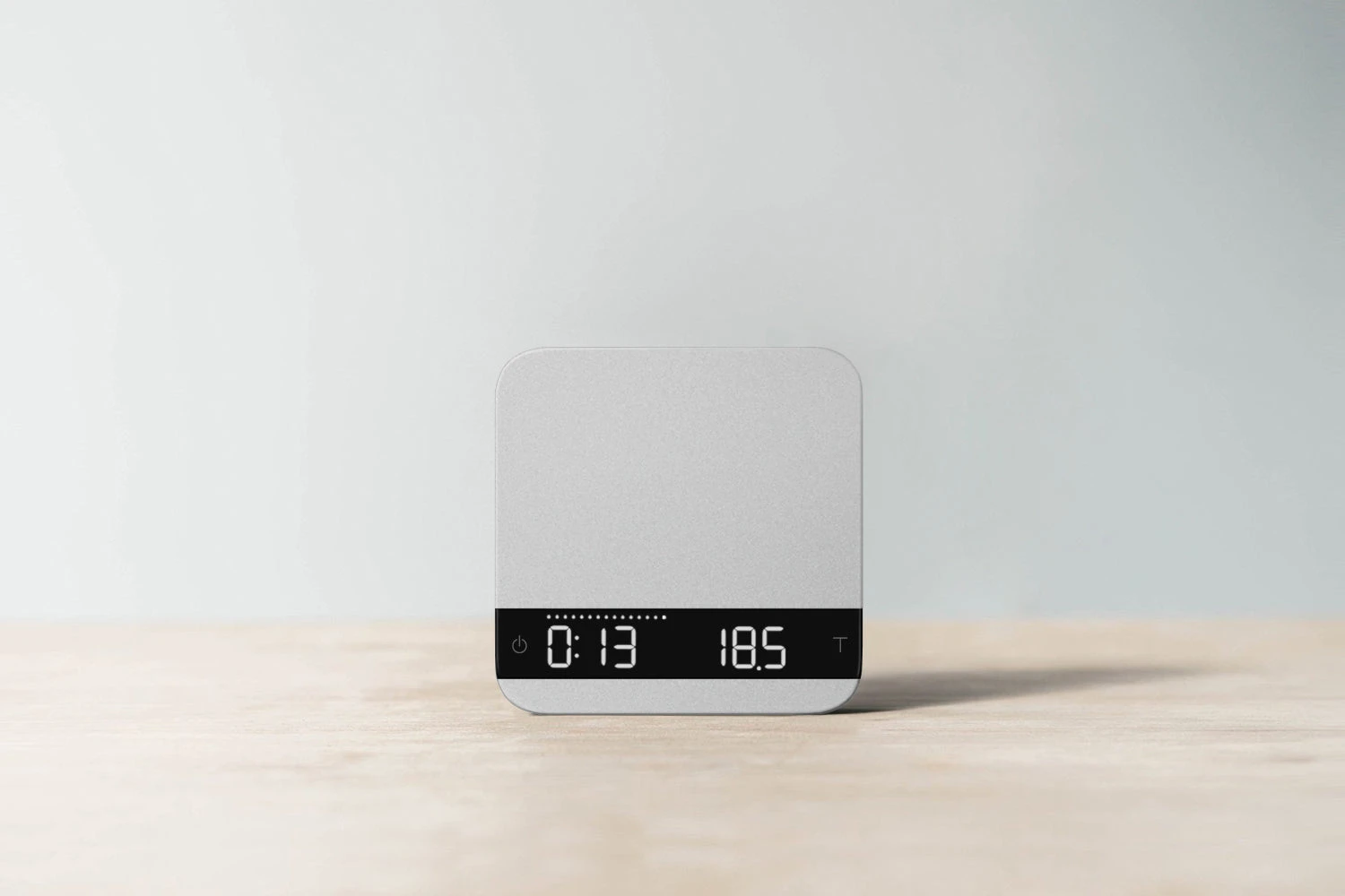 The silver edition of the Acaia Lunar 2021 is complemented with a contrasting black bar screen with LEDs brighter than the original Lunar. This screen shows the weight of your dose or shot, as well as the time that your shot is taking to extract. The Lunar 2021 is more responsive than its predecessor, so there’s virtually no lag time between adding weight to your scale and the increased weight registering on the screen. With a height of just 15 mm, the slim profile of this scale makes it easy to fit under most brew groups. This means you won’t have to worry about an overly bulky scale limiting the clearance for your espresso cups.