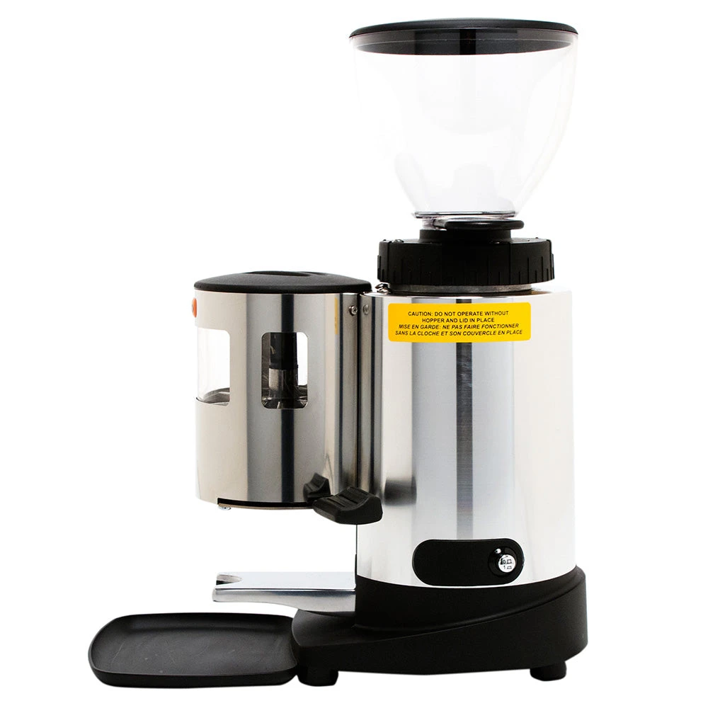 We regard Ceado highly in terms of the innovative design elements present in all of their grinders. Like the others, the E6X features a high capacity overload switch, which cuts the grinder’s power if a blockage occurs so as to avoid any damage to the motor. Our favorite feature has to be Ceado’s Steady Lock Burr technology. This design keeps the burrs at a constant distance apart from one another, whether they’re grinding for one shot or one hundred. In short, the Steady Lock Burr technology makes grinding with the E6X seriously consistent. If you need a bigger grinder for a high volume environment, the Ceado E7 comes in two versions; both feature a doser, but one grinds manually like the E6X, and the other can automatically refill the doser when it hits empty so it’s always ready to go.