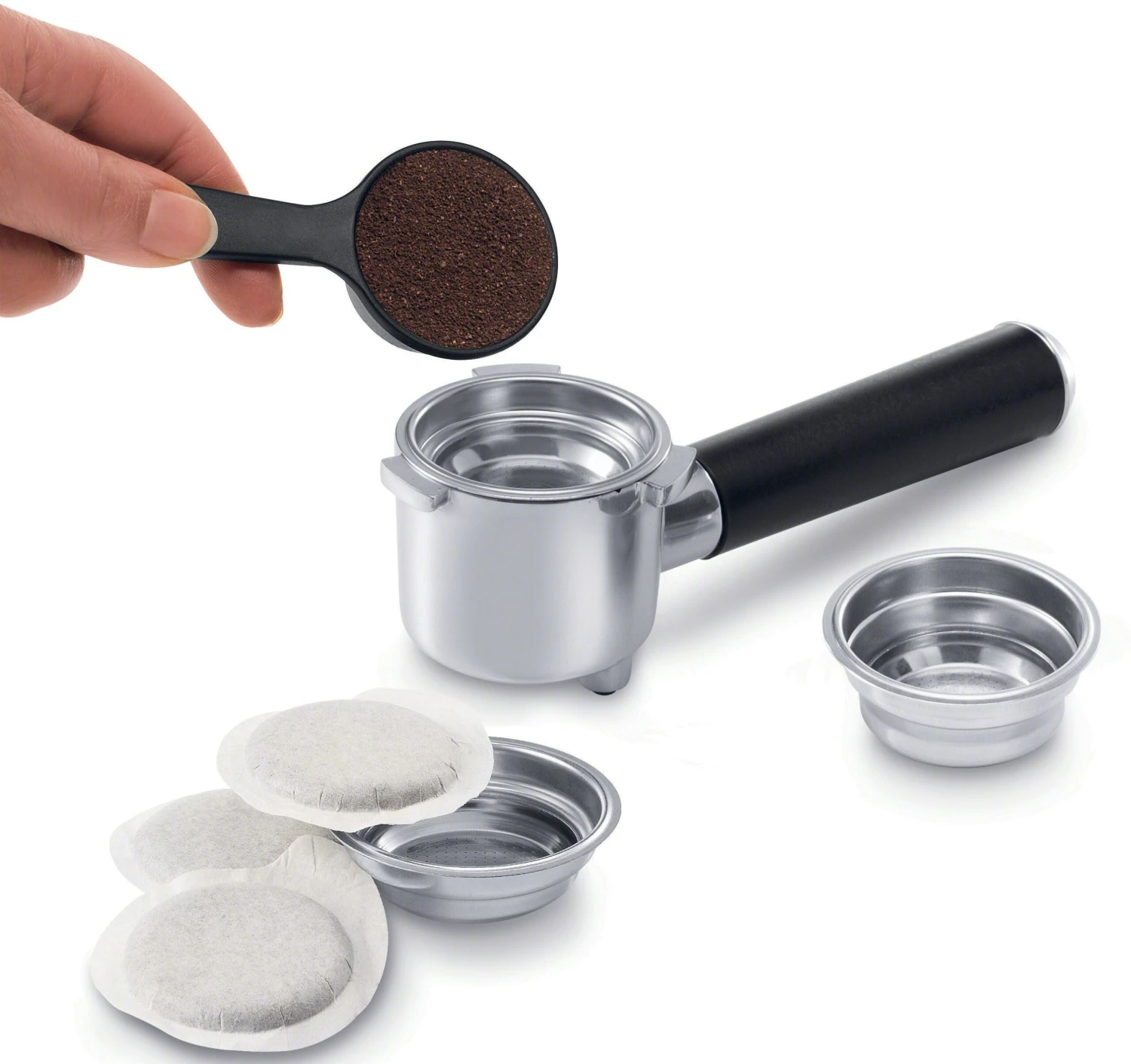 Each machine includes a dual purpose scoop and tamper to assist with filling the portafilter. Crafting milk drinks utilizes the manual cappuccino system to texture perfect milk foam for favorites like lattes and cappuccinos. Steaming is easy, simply press the steam button twice and ensure that the steam knob is in the steaming position. The machine can also dispense hot water for drinks like tea and cocoa by repositioning the steam knob to the hot water position.