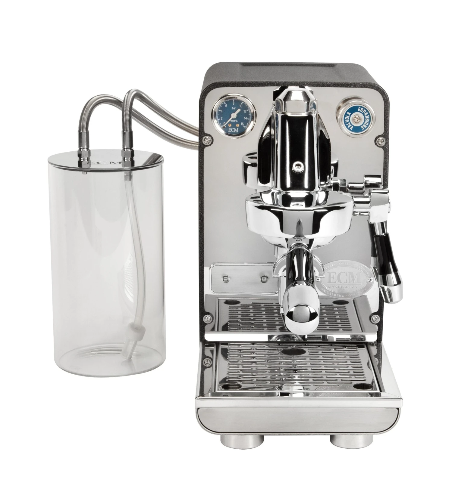 The ECM Puristika is a single-boiler espresso machine that reimagines the relationship between home and barista. Super compact and eminently stylish, the Puristika features many of the same premium components and materials found in ECM’s flagship Synchronika like its PID controller and anthracite housing. In a first for ECM, the Puristika is an espresso only machine with no steam or hot water capabilities. Its unique design features a multi-position glass water tank, allowing for more flexible placement on the counter. It’s other distinguishing trait is the front mounted expansion valve knob for easy adjustment of brew pressure.