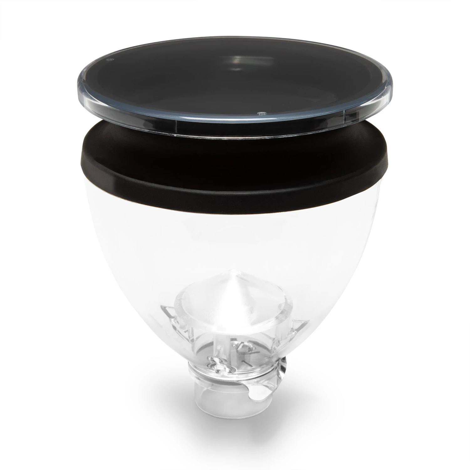 Designed for use with Eureka’s Mignon series of grinders, the Hopper Cleaning Kit is a bit of a misnomer. The kit is comprised of a 250g bean hopper with a vented metal shutter, an optional bellows attachment, and a lid. When installed, the bellows allows you flush air through the grinding chamber to push any remaining grounds out. The vented metal shutter is also a smooth alternative to the traditional plastic one used by Eureka and the venting allows air to be pushed through the shutter even when closed.