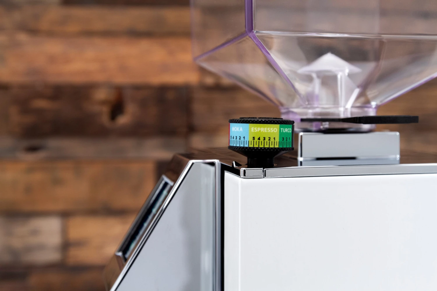 It’s quiet, measuring in at about 73 dBA, so you won’t ever need to stop a conversation to make your drinks. It brings Eureka’s patented micrometric adjustment, so you expect smooth, stepless adjustments when dialing in the grind. The “Easy Setting System,” a color-coded range on the adjustment knob shows you where to adjust for different brew methods, including everything from Turkish to French Press.