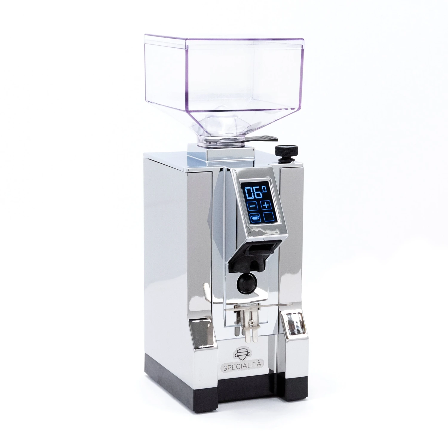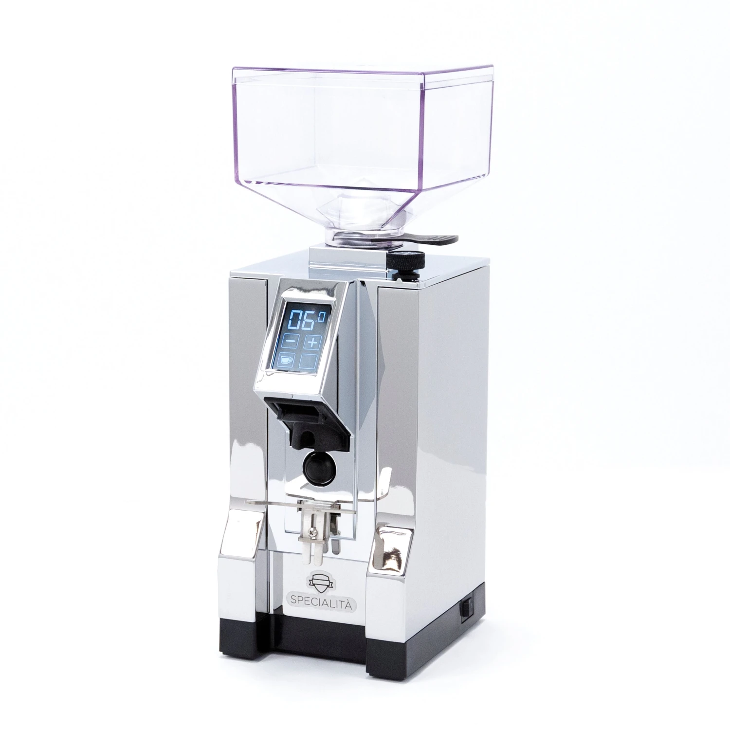 For performance, it’s equipped with 55 mm flat hardened steel burrs and a strong 1350 RPM motor with an output of 1.4 – 1.8g/s for espresso and 1.9 – 2.5g/s for brew. Eureka’s ACE system helps prevent clumping by eliminating static in ground coffee, which in turn ensures dose consistency.