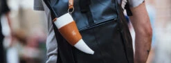When coffee is the most important part of your day, why make it boring? With the Goat Story Goat Mug in real brown or black leather, you can enjoy a 100% leak proof travel mug while making a statement. Once you’ve arrived at your destination, the leather sleeve pulls double duty and can removed and used as a stand for the horn.