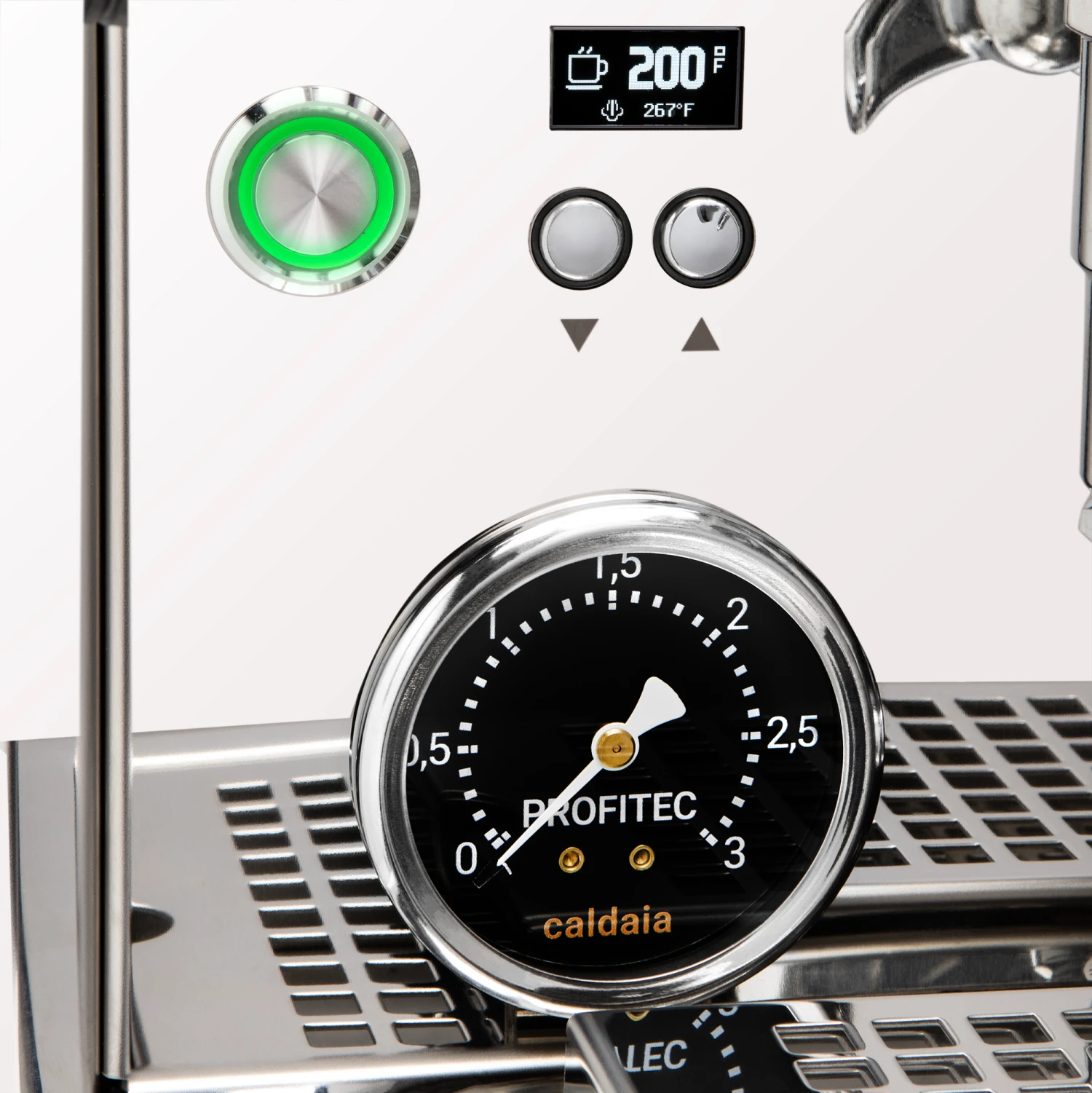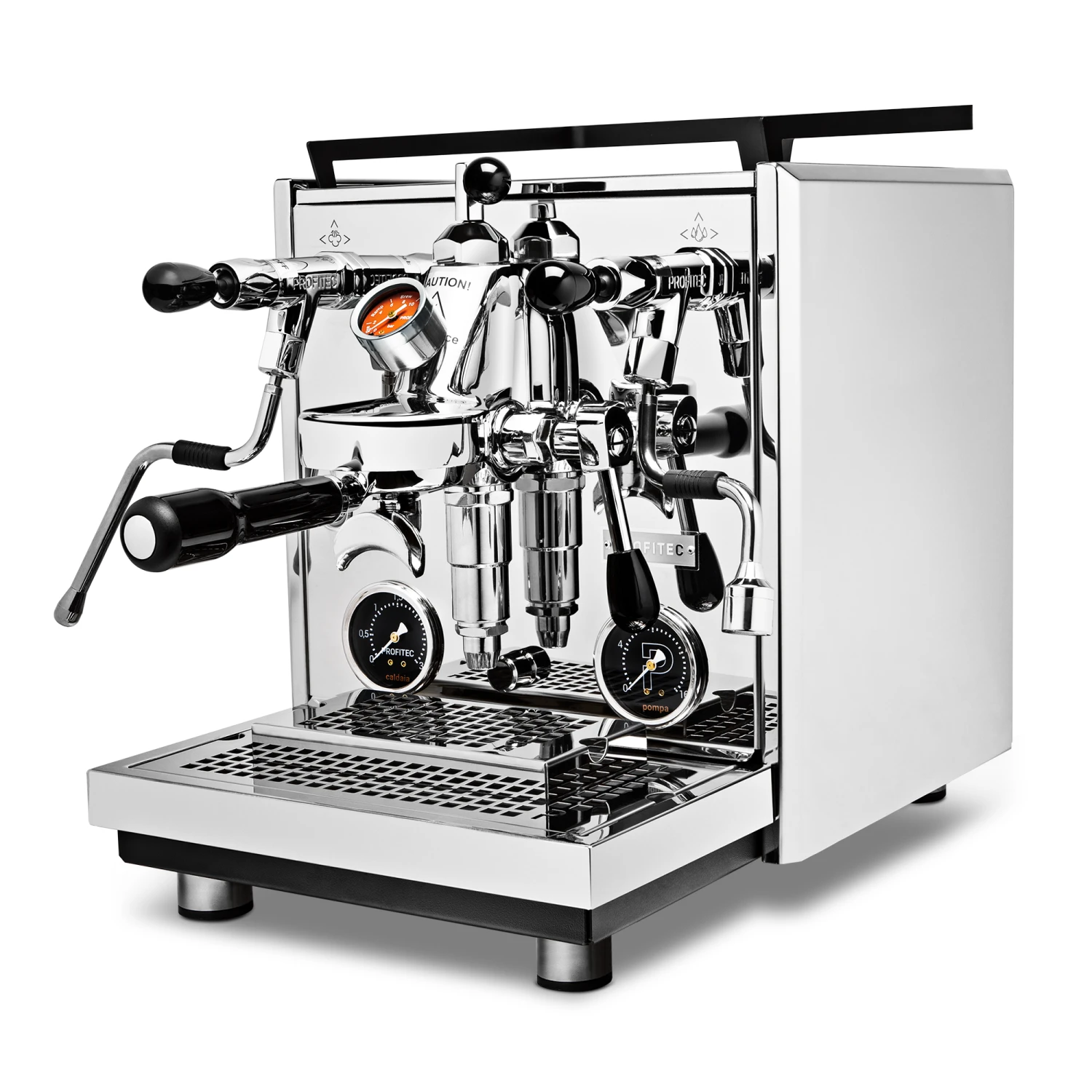 From the outside the Drive has inherited a number of design elements that have become staples within the Profitec lookbook. The updated quick steam valves and Twist and Change portafilter handles allow for simple customization with a wide variety of accents and materials. Ever present is the iconic “P” cutout on the drip tray along with black gauges for brew and steam pressure. In a nod to the Pro 400, the Drive echoes its black frame beneath the drip tray and cutout “Profitec” logo on the back panel.