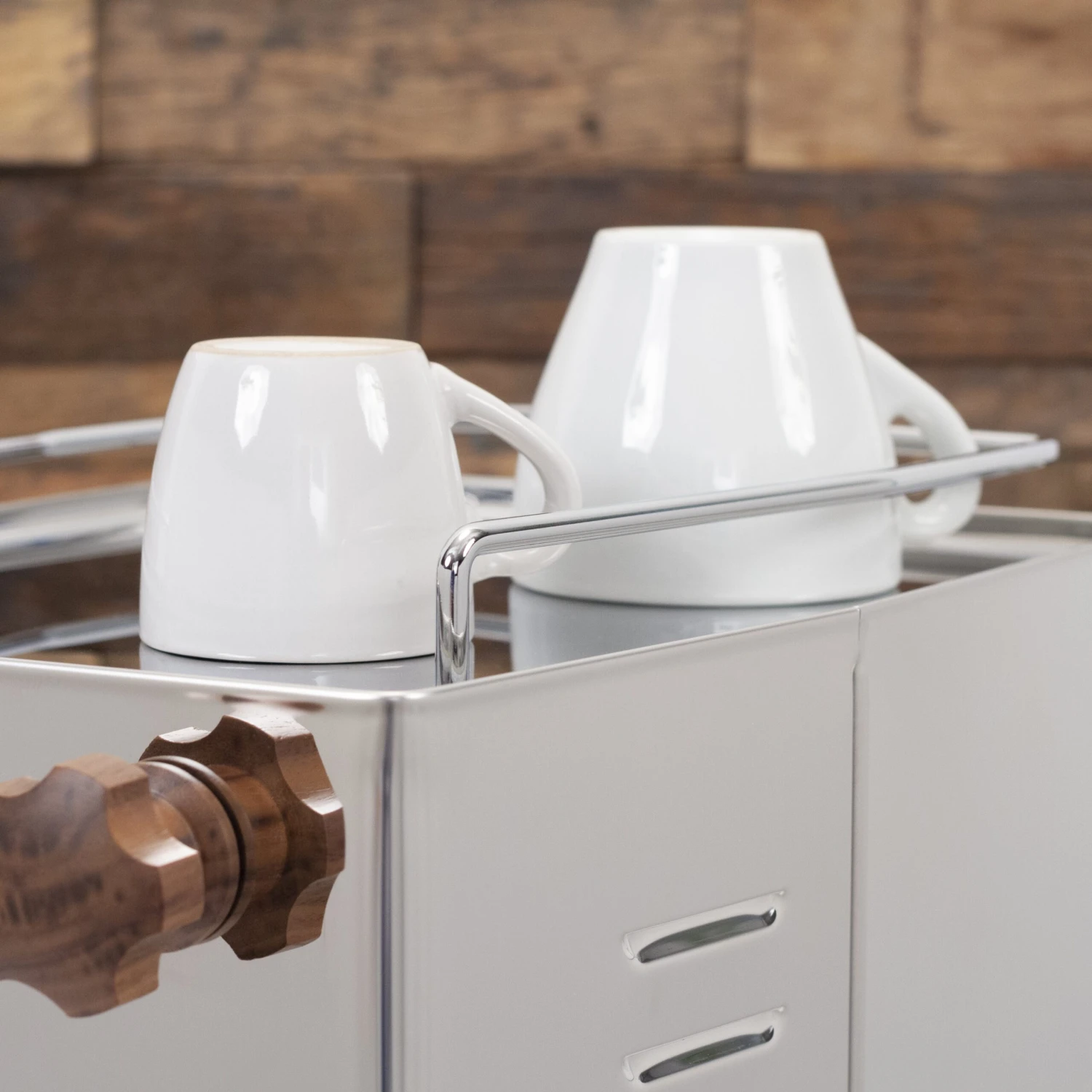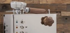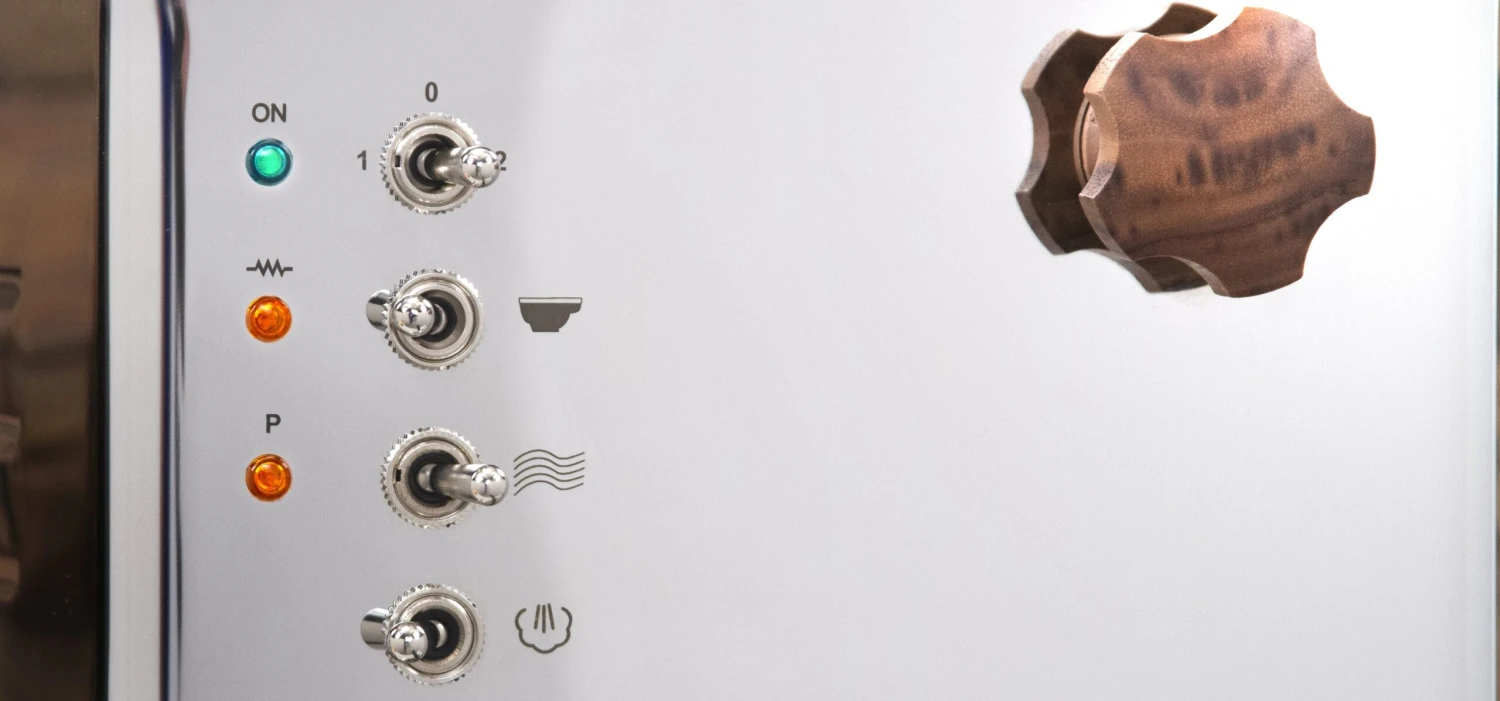The Pippa has a stainless steel 304, super mirror body, three different thermometers to measure coffee, steam and safety separately, a lever switch 1-0-2 to protect the heater, a 16 bar brew pressure gauge and a no burn commercial style steam/water wand.