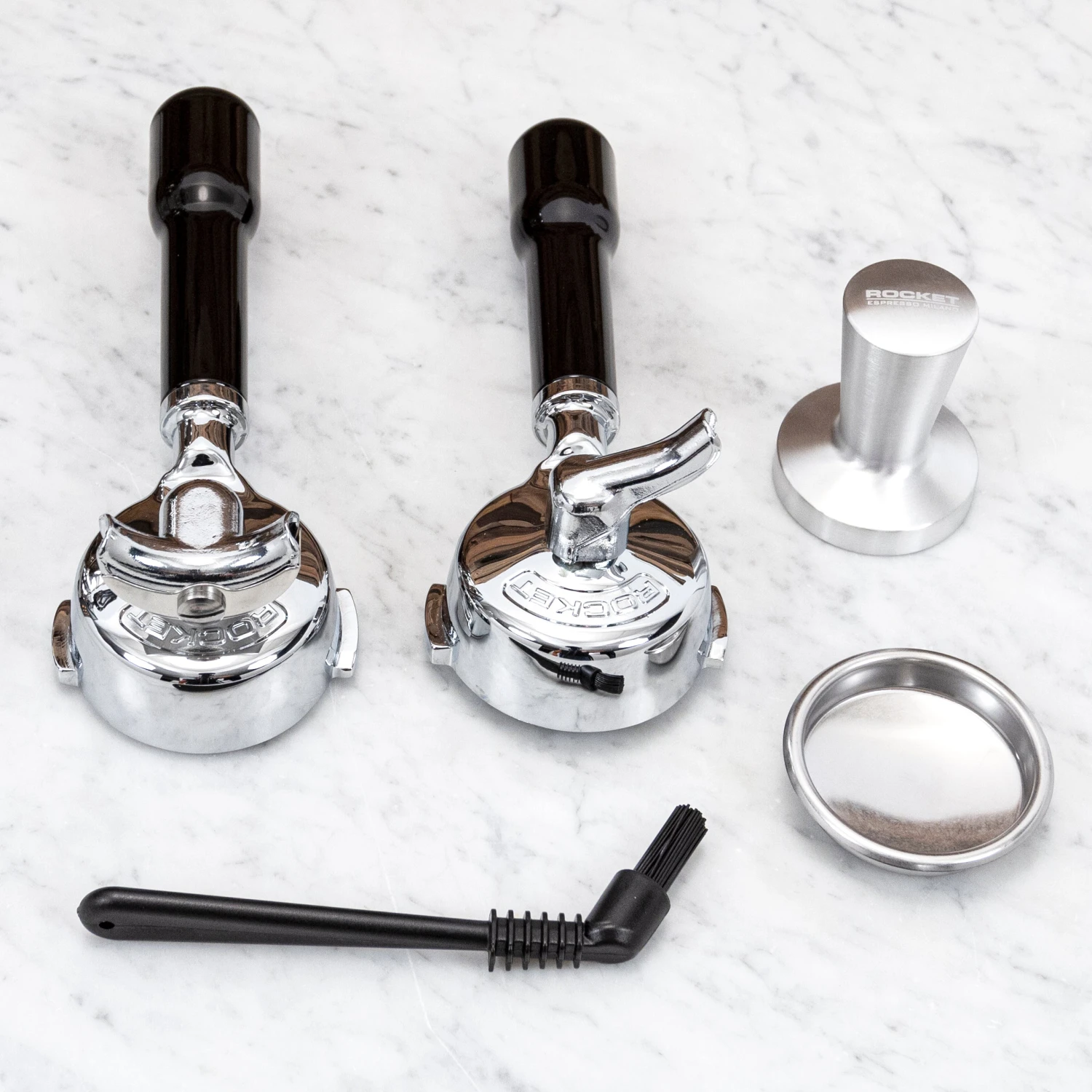 One of the nicest things about buying a Rocket machine is it comes with a really in depth training guide and manual, plus, they’re one of the very few brands to include a high quality metal tamper with their machines rather than a dinky plastic one you’ll never use. The Serie Nera also includes a much needed metal cup railing in the box. For added temperature stability, check out the Giotto or Mozzafiato Type V for PID controlled boiler temp control.