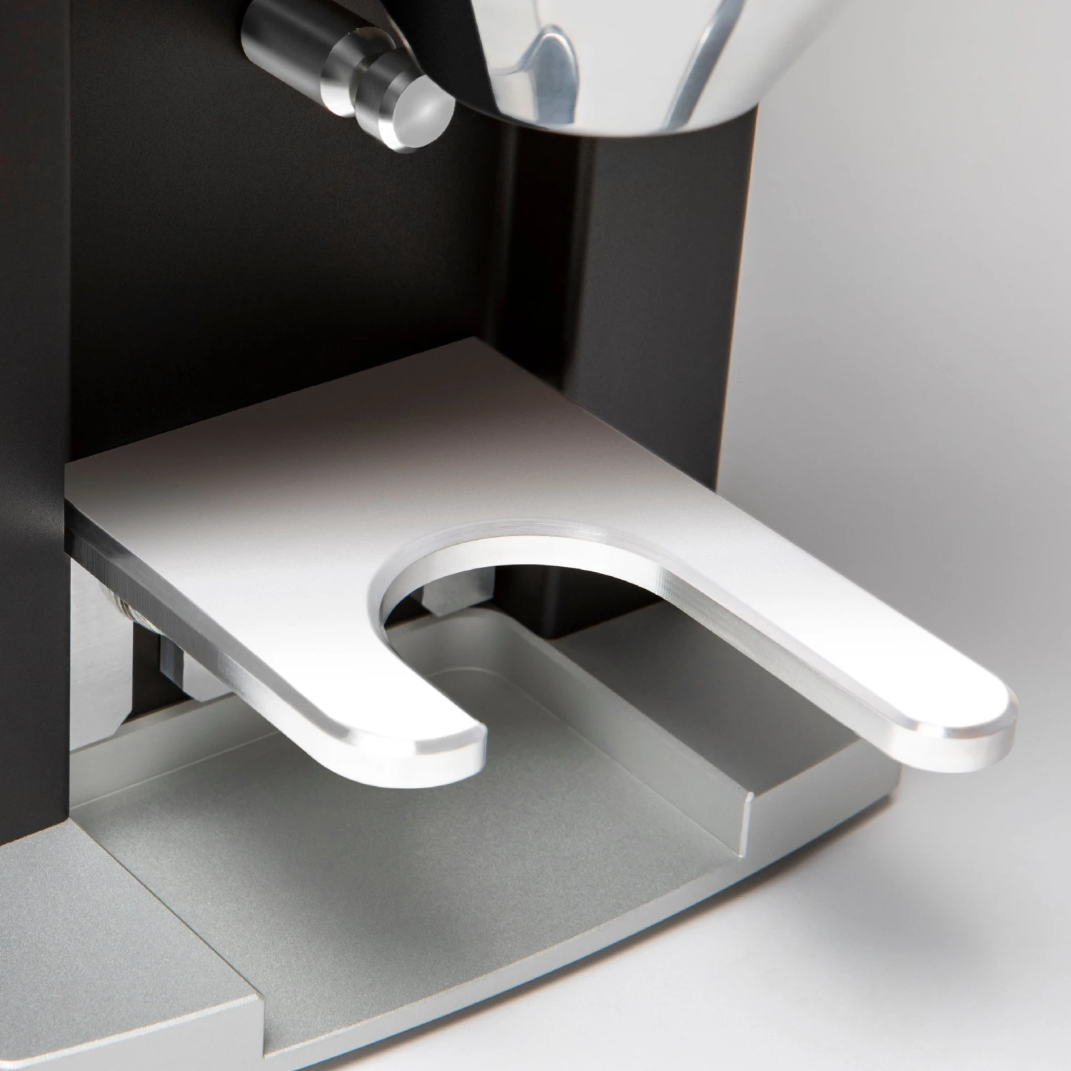 A small touchscreen display keeps everything neat and simple with the option to choose between a single dose, double dose, triple dose, or manual dosing. Visually, the display has a clean design and all UI elements are arranged for easy reading. For hands-free grinding, you can just leave the portafilter in the holder, press your desired amount, and watch the Faustino dispense fluffy grounds from the chute. You can easily adjust your grind settings for a single, double, or triple dose down to 1/10 of a second. Plus, the continuous grind button allows you to manually grind when you’re trying to find the right timing while dialing in or if you need to top off your grounds.