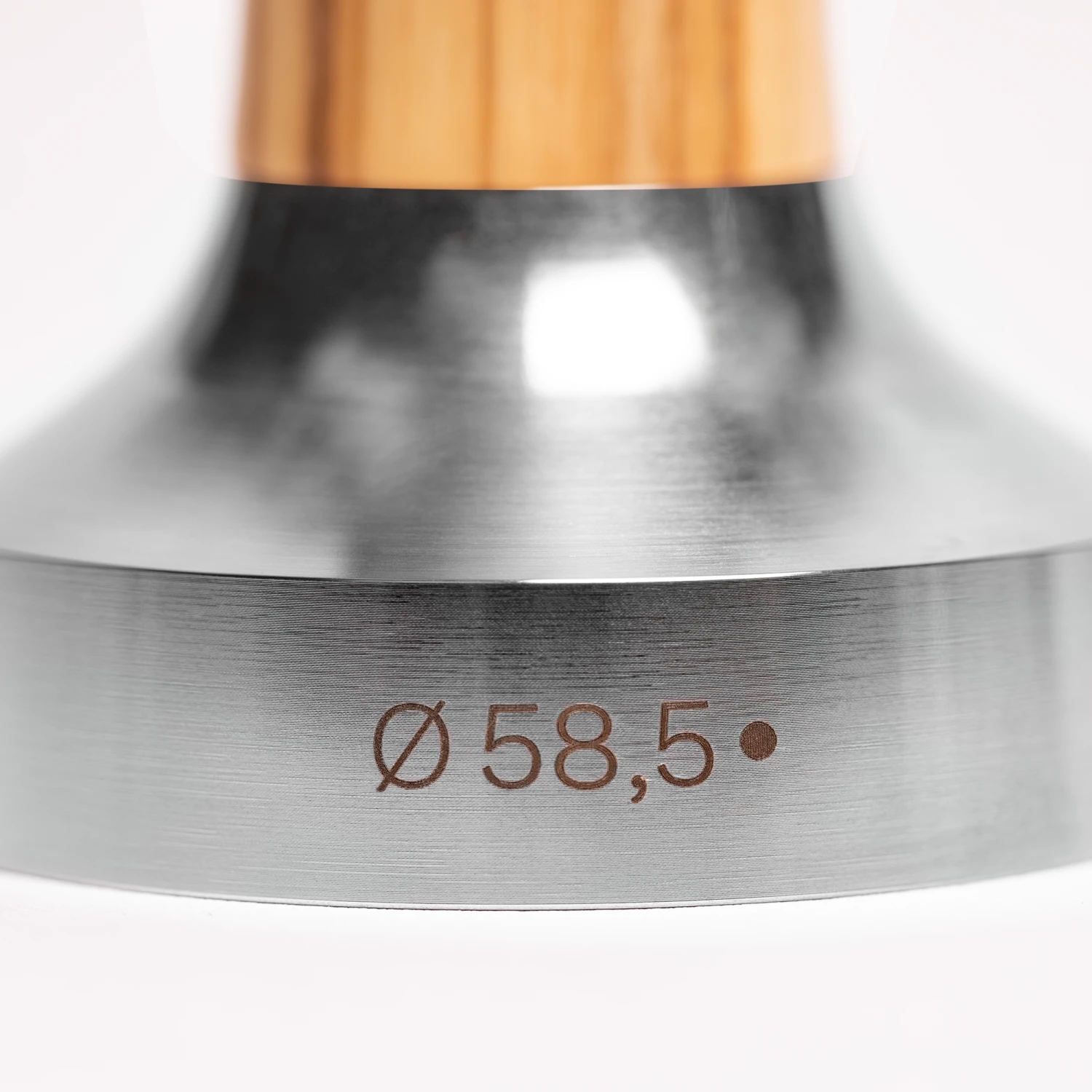 The ultimate blend of style, comfort and performance, the Wiedemann Precision 58.5mm Tamper in Olive Wood takes all variables into account when it comes to form and function for espresso tamping. With its robust 58.5mm stainless steel base it eliminates play for level tamping and prevents loose coffee from adhering to the sides of the portafilter basket. The soft contoured wood of the handle is comfortable to hold and seamlessly joins with the base to naturally guide your thumb into proper tamping position.